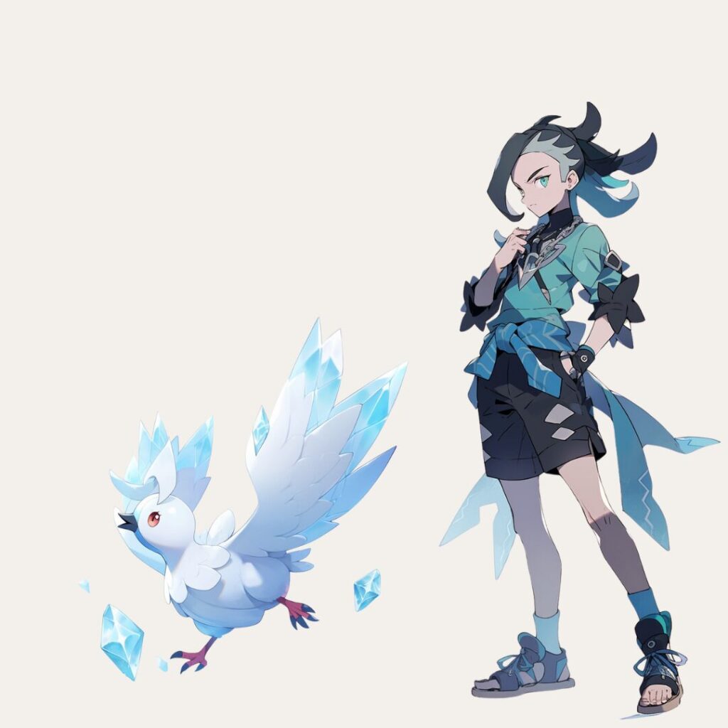 ツルッツーのコンセプトは氷上のフィギュアスケーターで、雪山をツルツル滑る鶴ポケモンという設定にしました。